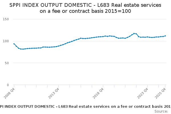 Download this time seriesSPPI INDEX OUTPUT DOMESTIC - L683 Real estate services on a fee or contract basis 2015=100