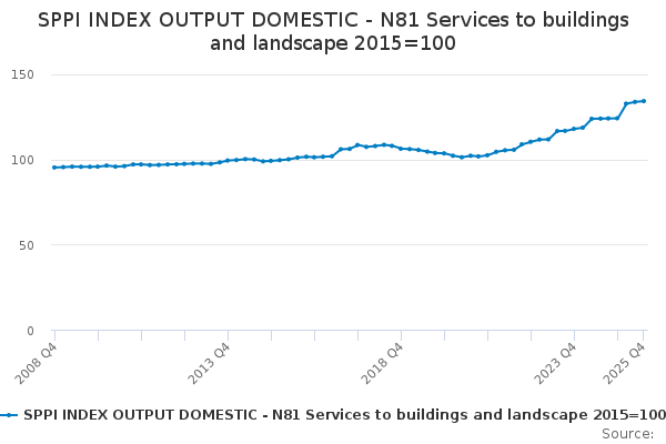 Download this time seriesSPPI INDEX OUTPUT DOMESTIC - N81 Services to buildings and landscape 2015=100