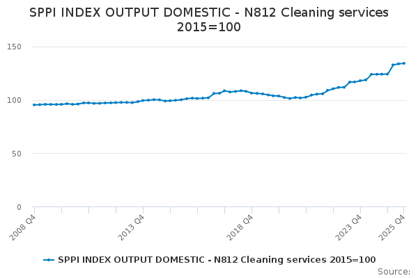 Download this time seriesSPPI INDEX OUTPUT DOMESTIC - N812 Cleaning services 2015=100
