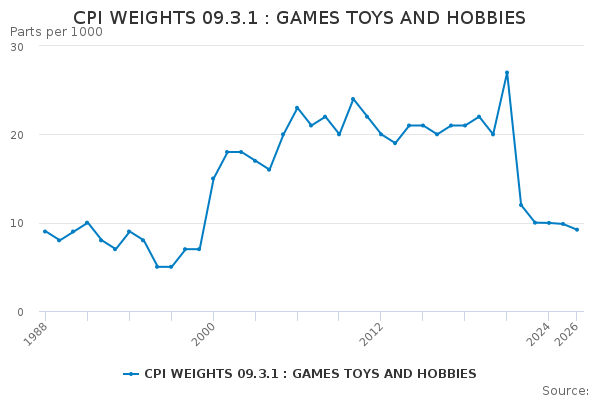 Download this time seriesCPI WEIGHTS 09.3.1 : GAMES TOYS AND HOBBIES