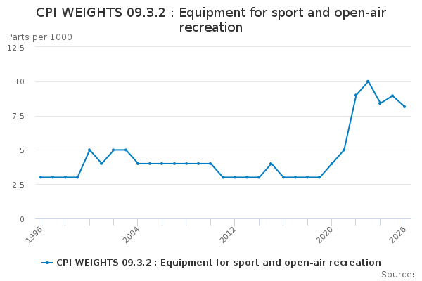 Download this time seriesCPI WEIGHTS 09.3.2 : Equipment for sport and open-air recreation