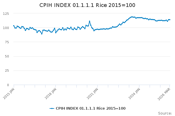 Download this time seriesCPIH INDEX 01.1.1.1 Rice 2015=100