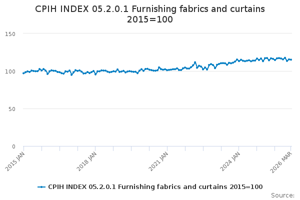 Download this time seriesCPIH INDEX 05.2.0.1 Furnishing fabrics and curtains 2015=100