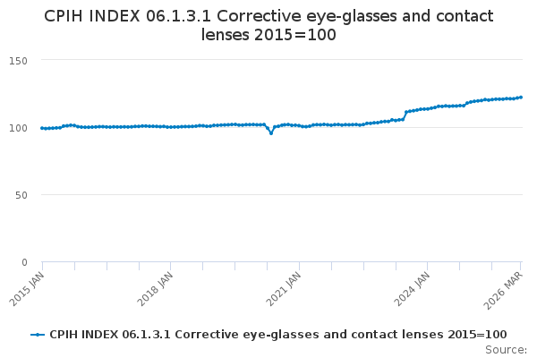 Download this time seriesCPIH INDEX 06.1.3.1 Corrective eye-glasses and contact lenses 2015=100