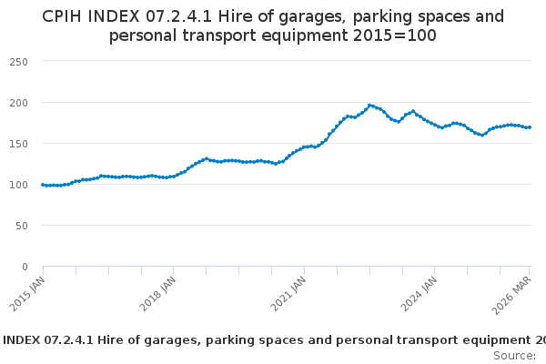 Download this time seriesCPIH INDEX 07.2.4.1 Hire of garages, parking spaces and personal transport equipment 2015=100