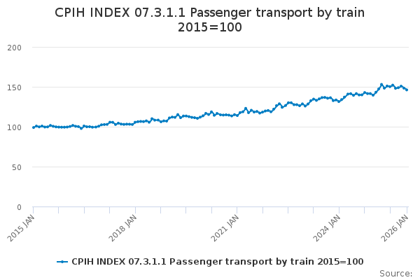 Download this time seriesCPIH INDEX 07.3.1.1 Passenger transport by train 2015=100