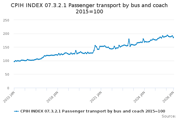 Download this time seriesCPIH INDEX 07.3.2.1 Passenger transport by bus and coach 2015=100