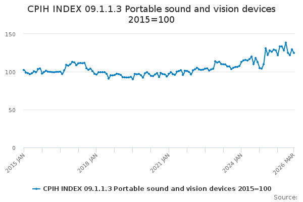 Download this time seriesCPIH INDEX 09.1.1.3 Portable sound and vision devices 2015=100