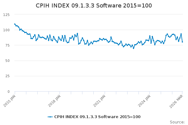 Download this time seriesCPIH INDEX 09.1.3.3 Software 2015=100