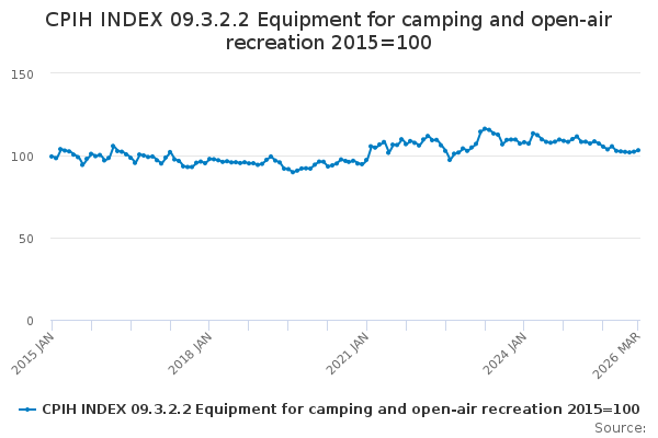Download this time seriesCPIH INDEX 09.3.2.2 Equipment for camping and open-air recreation 2015=100