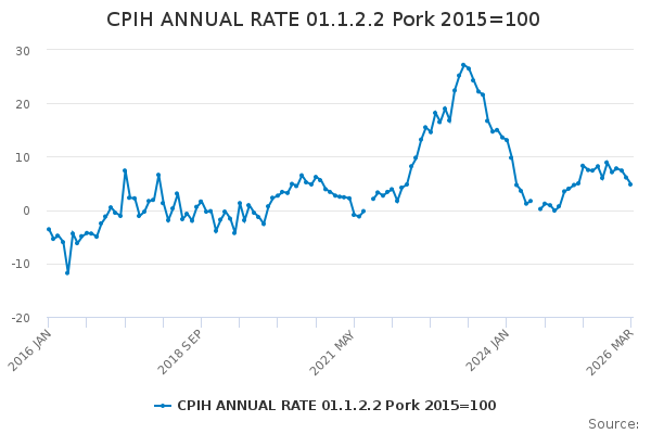 Download this time seriesCPIH ANNUAL RATE 01.1.2.2 Pork 2015=100