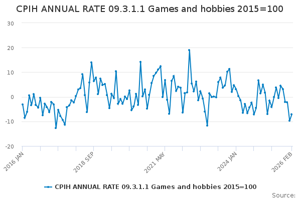 Download this time seriesCPIH ANNUAL RATE 09.3.1.1 Games and hobbies 2015=100