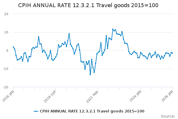 Download this time seriesCPIH ANNUAL RATE 12.3.2.1 Travel goods 2015=100