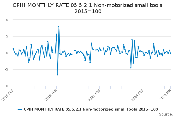 Download this time seriesCPIH MONTHLY RATE 05.5.2.1 Non-motorized small tools 2015=100