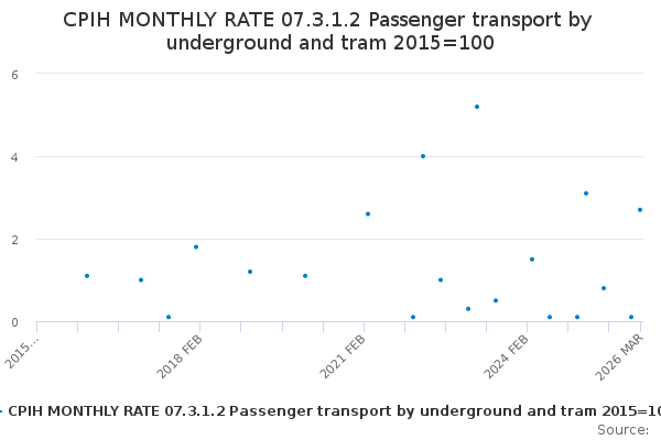 Download this time seriesCPIH MONTHLY RATE 07.3.1.2 Passenger transport by underground and tram 2015=100