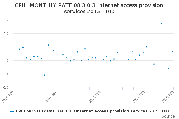 Download this time seriesCPIH MONTHLY RATE 08.3.0.3 Internet access provision services 2015=100