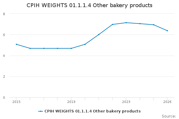 Download this time seriesCPIH WEIGHTS 01.1.1.4 Other bakery products