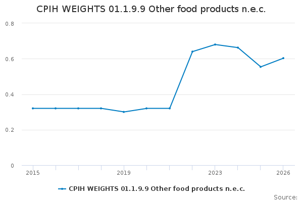 Download this time seriesCPIH WEIGHTS 01.1.9.9 Other food products n.e.c.