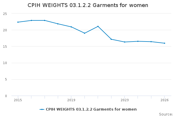 Download this time seriesCPIH WEIGHTS 03.1.2.2 Garments for women