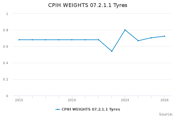 Download this time seriesCPIH WEIGHTS 07.2.1.1 Tyres