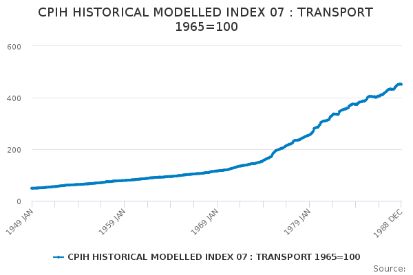 Download this time seriesCPIH HISTORICAL MODELLED INDEX 07 : TRANSPORT 1965=100