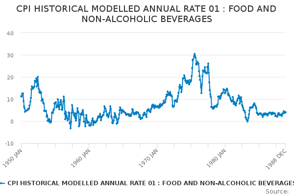 Download this time seriesCPI HISTORICAL MODELLED ANNUAL RATE 01 : FOOD AND NON-ALCOHOLIC BEVERAGES