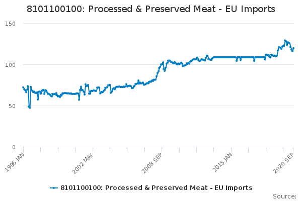 Download this time series8101100100: Processed & Preserved Meat - EU Imports