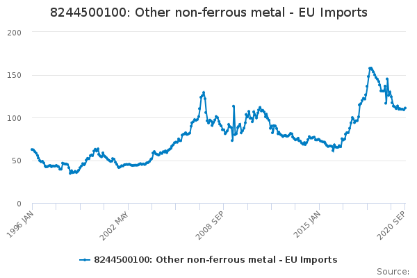 Download this time series8244500100: Other non-ferrous metal - EU Imports
