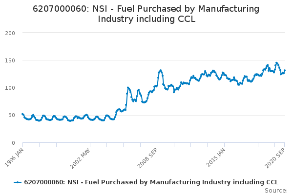 Download this time series6207000060: NSI - Fuel Purchased by Manufacturing Industry including CCL
