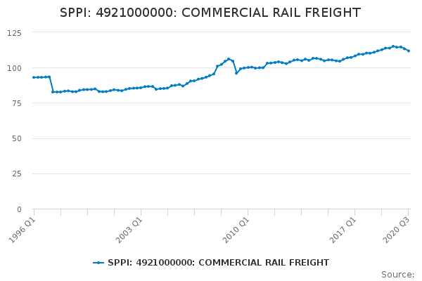 Download this time seriesSPPI: 4921000000: COMMERCIAL RAIL FREIGHT