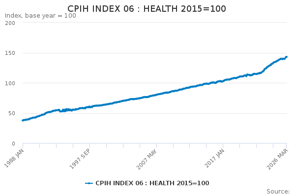 Download this time seriesCPIH INDEX 06 : HEALTH 2015=100