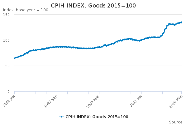 Download this time seriesCPIH INDEX: Goods 2015=100