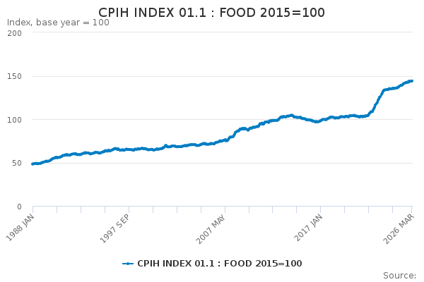 Download this time seriesCPIH INDEX 01.1 : FOOD 2015=100