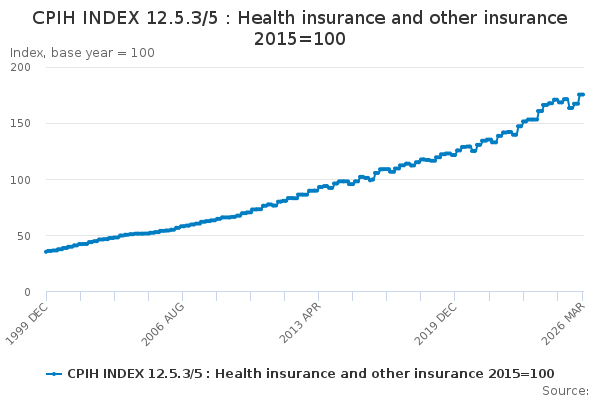 Download this time seriesCPIH INDEX 12.5.3/5 : Health insurance and other insurance 2015=100