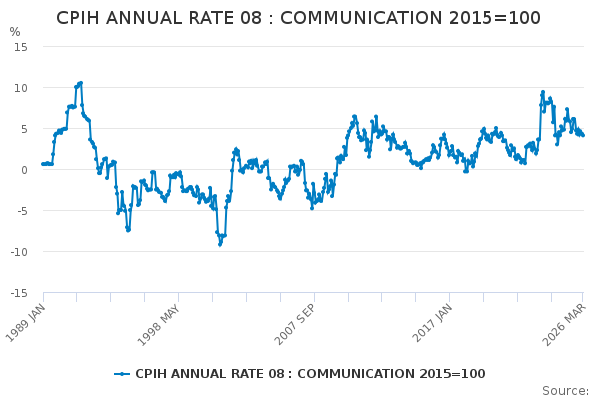 Download this time seriesCPIH ANNUAL RATE 08 : COMMUNICATION 2015=100