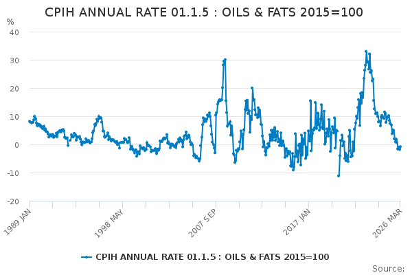 Download this time seriesCPIH ANNUAL RATE 01.1.5 : OILS & FATS 2015=100