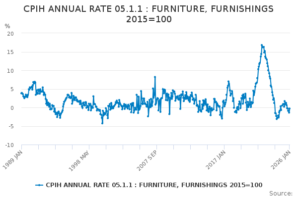Download this time seriesCPIH ANNUAL RATE 05.1.1 : FURNITURE, FURNISHINGS 2015=100