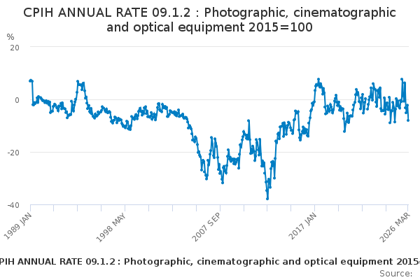 Download this time seriesCPIH ANNUAL RATE 09.1.2 : Photographic, cinematographic and optical equipment 2015=100