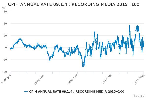 Download this time seriesCPIH ANNUAL RATE 09.1.4 : RECORDING MEDIA 2015=100