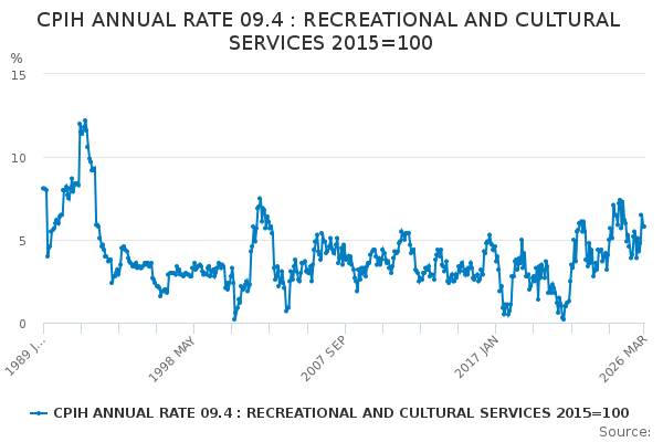 Download this time seriesCPIH ANNUAL RATE 09.4 : RECREATIONAL AND CULTURAL SERVICES 2015=100
