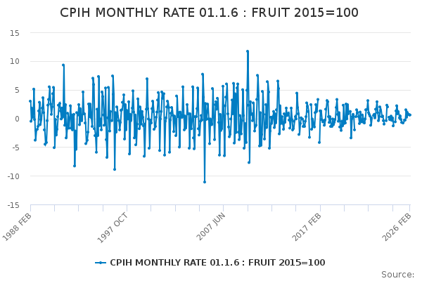 Download this time seriesCPIH MONTHLY RATE 01.1.6 : FRUIT 2015=100