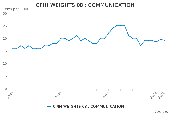 Download this time seriesCPIH WEIGHTS 08 : COMMUNICATION