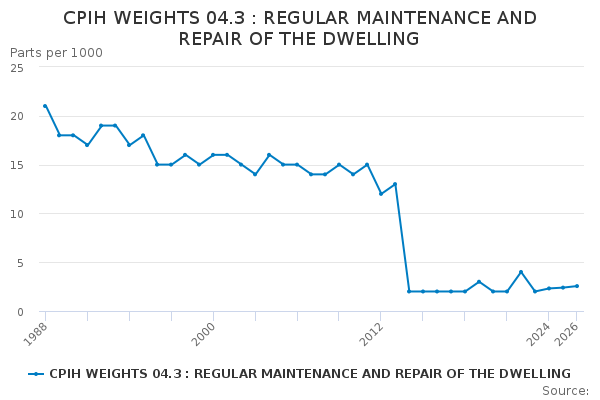Download this time seriesCPIH WEIGHTS 04.3 : REGULAR MAINTENANCE AND REPAIR OF THE DWELLING