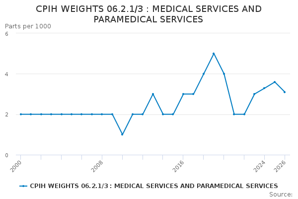 Download this time seriesCPIH WEIGHTS 06.2.1/3 : MEDICAL SERVICES AND PARAMEDICAL SERVICES