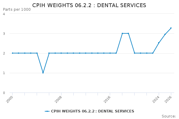 Download this time seriesCPIH WEIGHTS 06.2.2 : DENTAL SERVICES