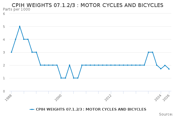 Download this time seriesCPIH WEIGHTS 07.1.2/3 : MOTOR CYCLES AND BICYCLES