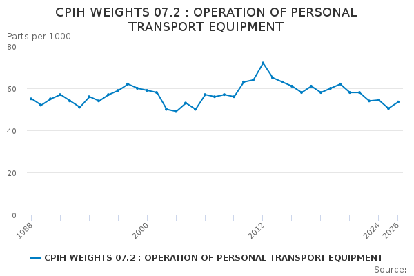 Download this time seriesCPIH WEIGHTS 07.2 : OPERATION OF PERSONAL TRANSPORT EQUIPMENT