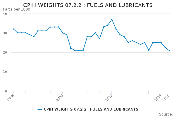Download this time seriesCPIH WEIGHTS 07.2.2 : FUELS AND LUBRICANTS