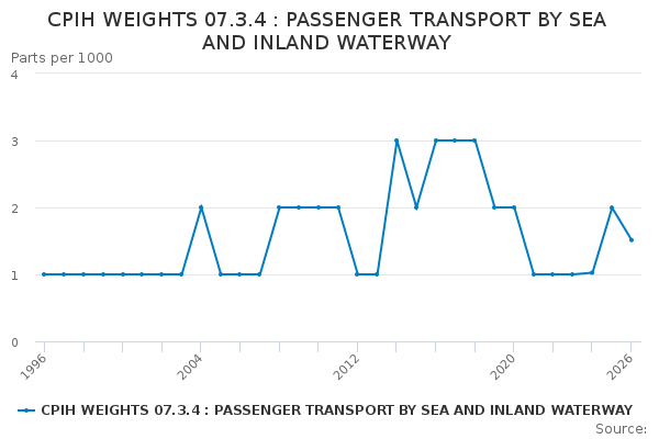 Download this time seriesCPIH WEIGHTS 07.3.4 : PASSENGER TRANSPORT BY SEA AND INLAND WATERWAY