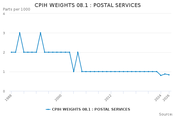 Download this time seriesCPIH WEIGHTS 08.1 : POSTAL SERVICES